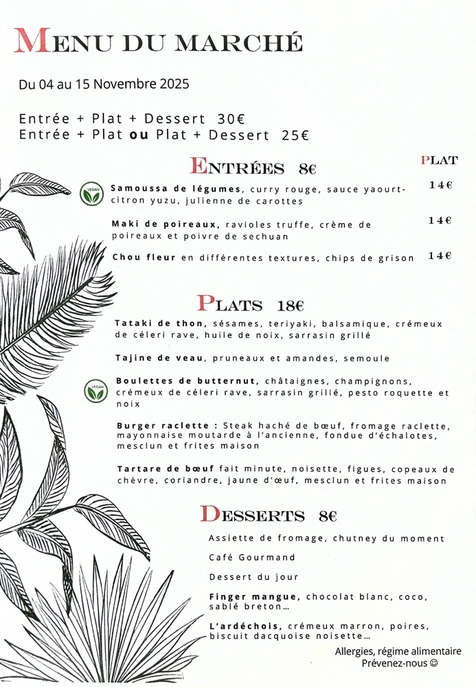 Notre cuisine est une cuisine du cœur, elle se fait avec amour et passion. Elle présente des saveurs basées sur des produits frais de qualité.